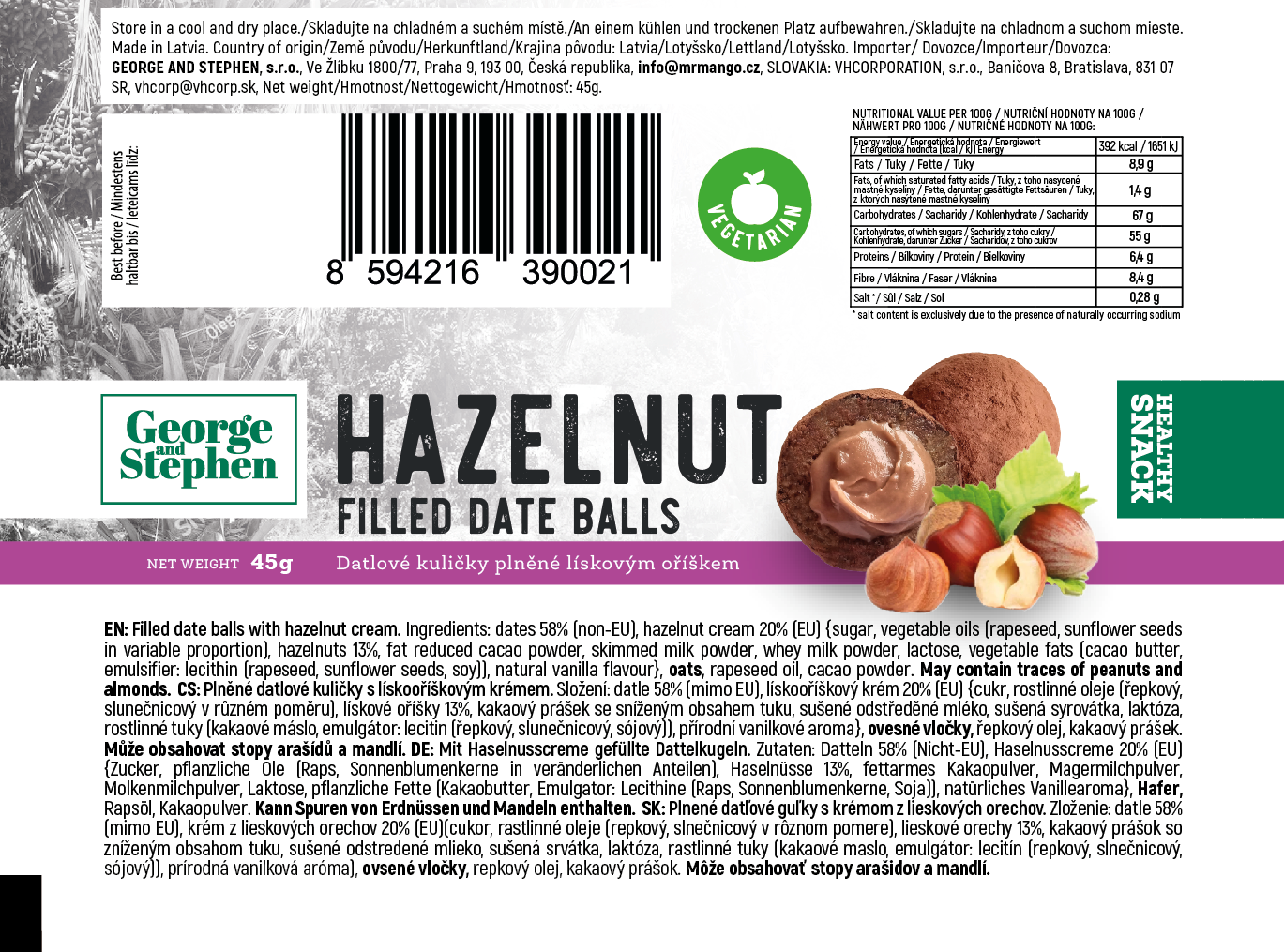 Datlové guličky plnené liesko-orieškovým krémom sú dokonalým spojením chutí, ktoré plne uspokoja vaše požiadavky na zdravé maškrtenie. Tiež vám dodajú rýchlu energiu, či už športujete alebo len potrebujete zdravo osladiť život. Vegetariánsky RAW výrobok. Vyrobené bez použitia palmového oleja. Pripravené podľa originálnej pobaltskej receptúry.