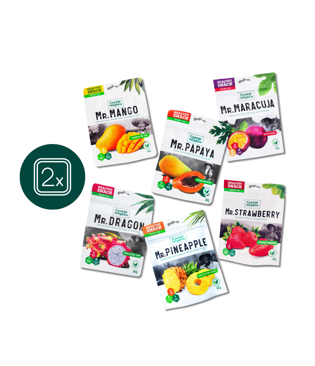 S Mr. Mango není žádná cesta příliš dlouhá a žádná svačina příliš obyčejná. Můžeš se vydat třeba na vrchol Sněžky nebo jen do školy – tak či tak, mango, papája, ananas, maracuja a další ti budou dodávat energii na každém kroku. Pokaždé, když otevřeš nový pack, objevíš něco nového!